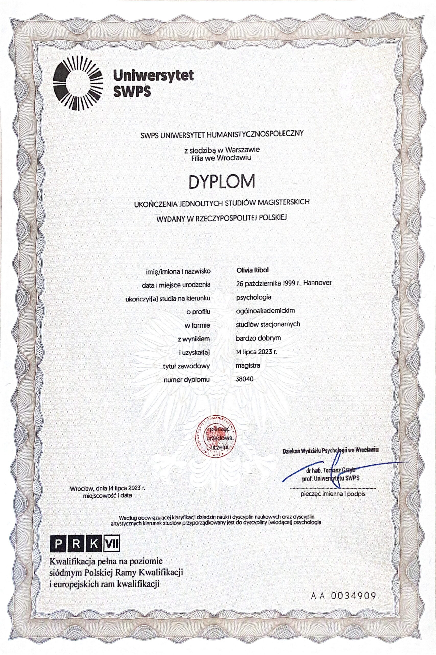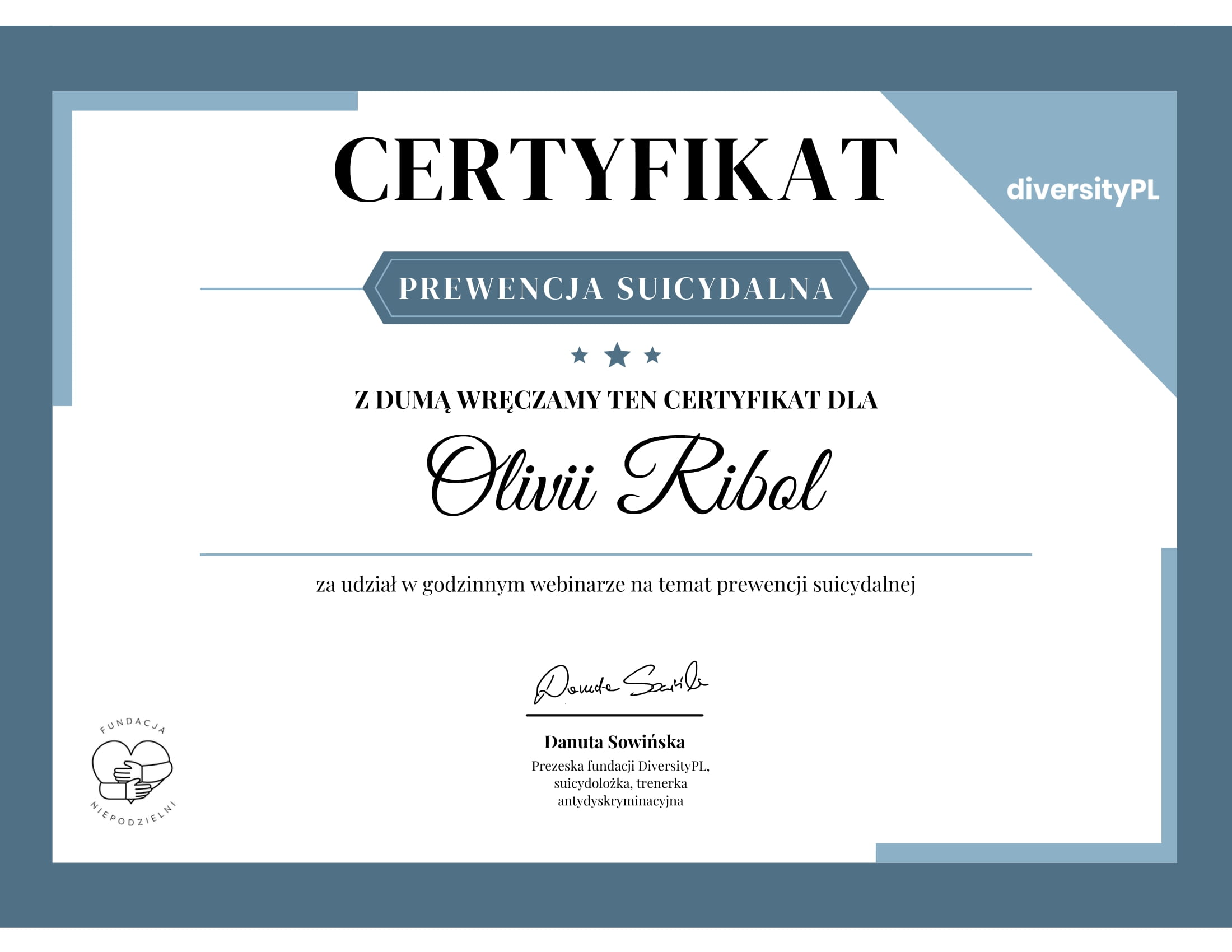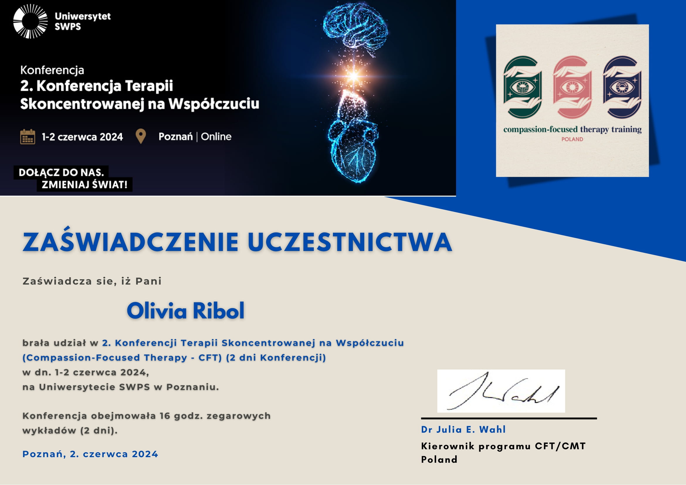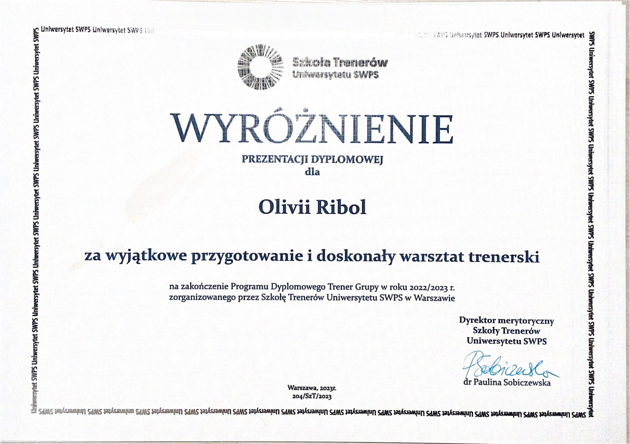 „Z Panią Olivią Ribol zaczęłam pracę nad emocjami a zmiany wprowadzam i zauważam po każdym spotkaniu. Pani Olivia jest bardzo serdeczną i punktualną osobą”