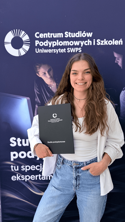 Gdy rozpoczęłam studia z psychologii klinicznej na Uniwersytecie SWPS we Wrocławiu, szybko przekonałam się, że trafiłam we właściwe miejsce. To doświadczenie znacząco różniło się od wszystkiego, czego uczyła mnie dotychczas szkoła. Wtedy już wiedziałam, że terapia i edukacja w zakresie zdrowia psychicznego są drogą, którą chcę podążać.